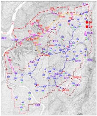 新建井口東側距離最近的散居民房74m,距離西側架空電力線路約63m平臺500m范圍內無100人以上的居住區、村鎮、學校、醫院、公共福利設施等特殊保護目標。焦頁7號平臺南側600m為東泉村,再往南為焦石鎮。